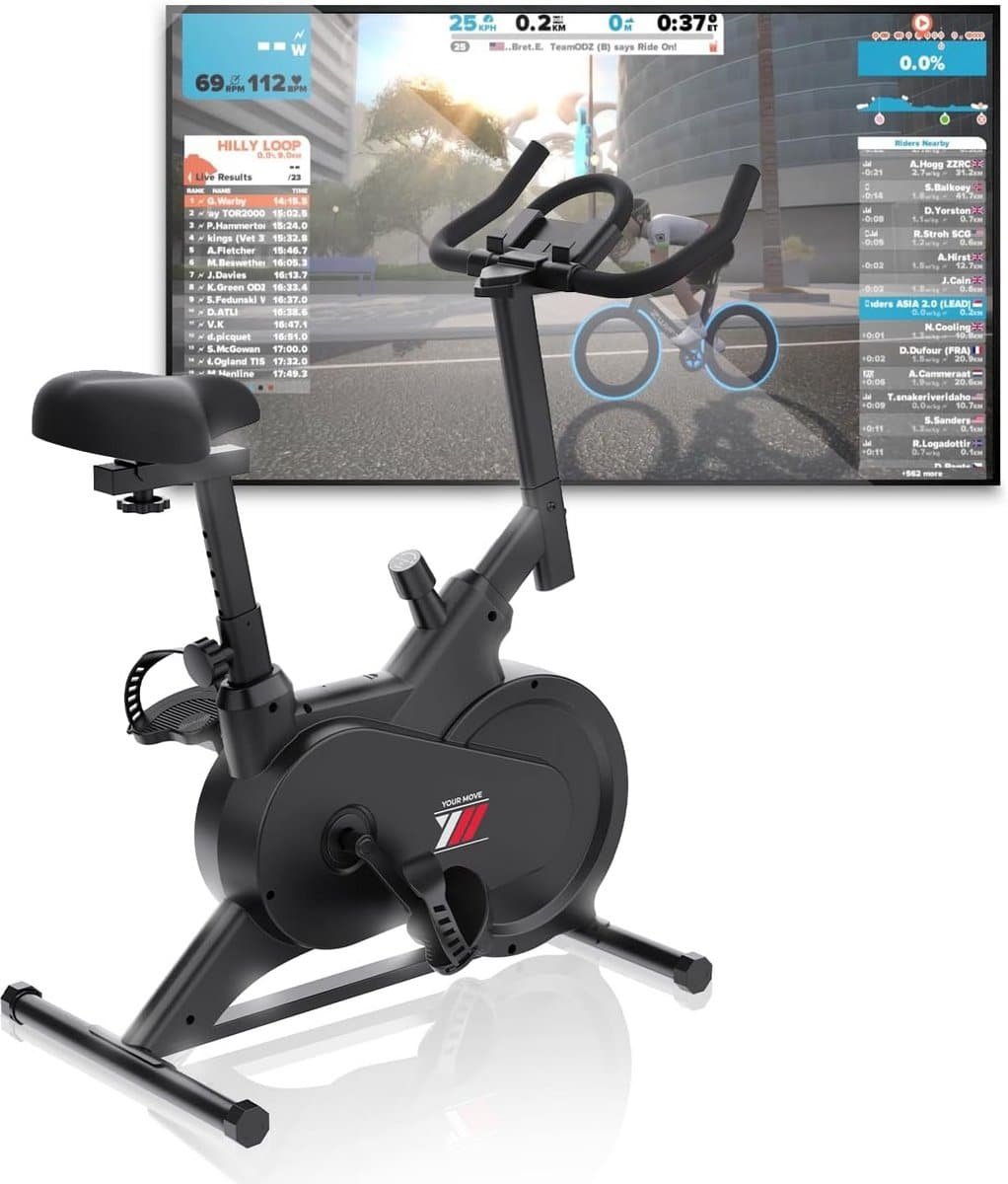 Ontdek deze compacte en gebruiksvriendelijke hometrainer, ideaal voor thuisgebruik. Eenvoudig verstelbaar dankzij de draaiknop voor zowel het zadel als de weerstand, zodat u altijd de perfecte trainingshouding vindt. De hometrainer is stil in gebruik en beschikt over Bluetooth-connectiviteit om te verbinden met populaire fitnessapps zoals Kinomap, Zwift en Bitgym. Voorzien van een handige houder voor uw smartphone of tablet. Geschikt voor gebruikers tot een maximale lengte van 170 cm.
