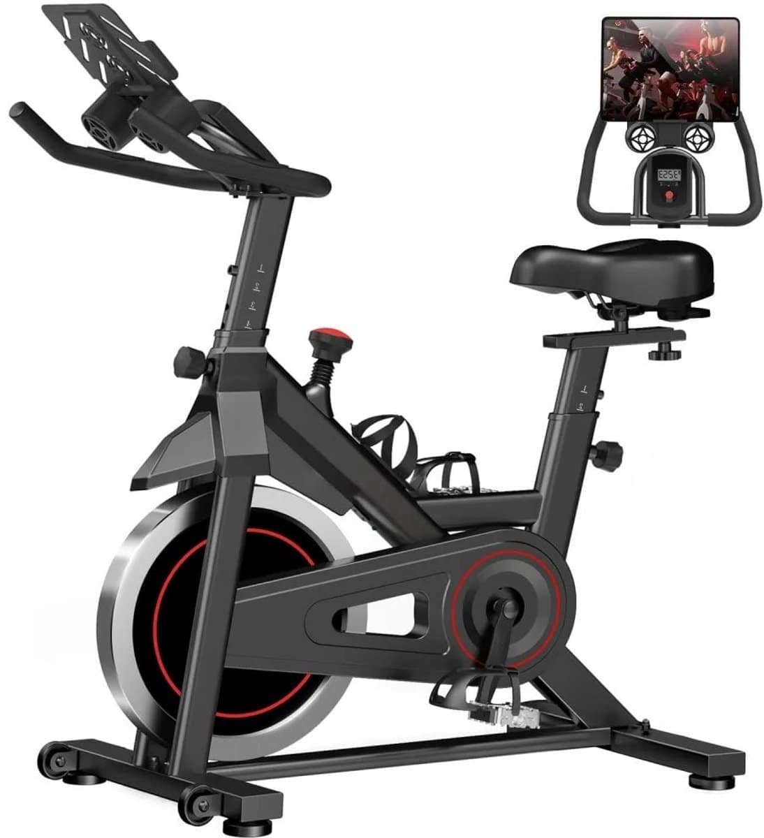 Hometrainer – Fitnessfiets – Indoor Bike – Trampolinefiets – Fietstrainer – Stil Riemaandrijving – Verstelbaar Comfortzadel – Tablet & Fleshouder – Max 136 kg