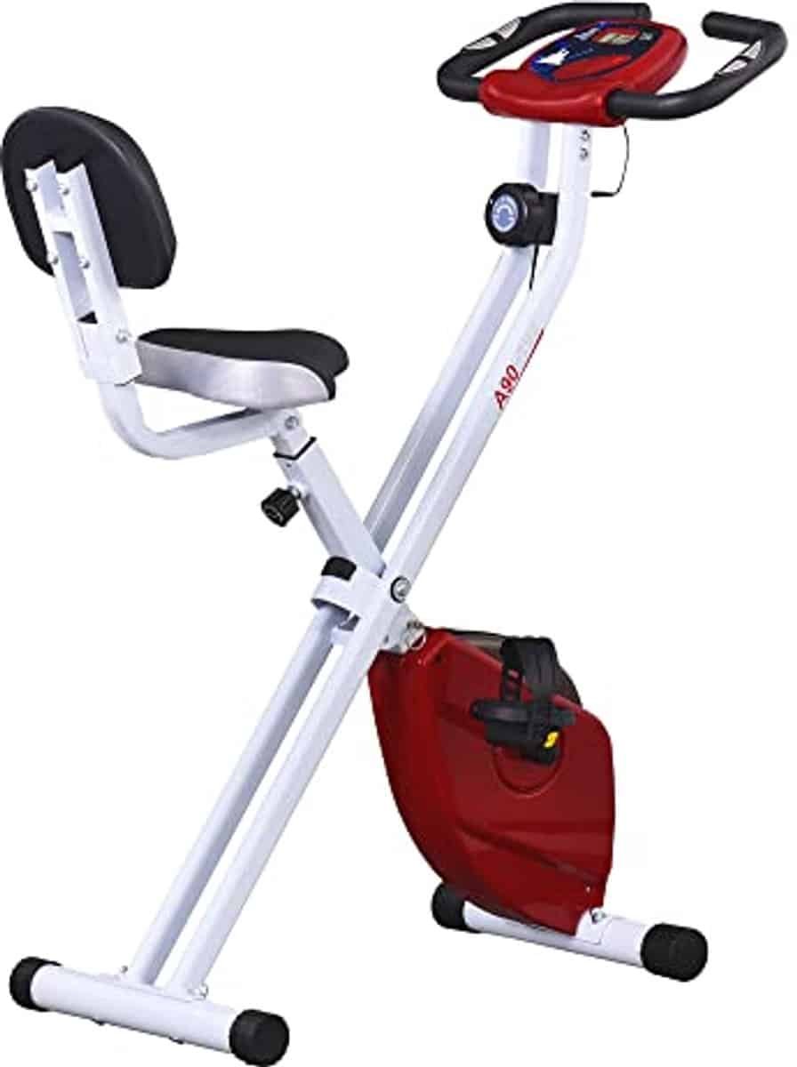 Deze inklapbare fitnesshometrainer is ideaal om in shape te blijven. Dankzij het multifunctionele LCD-display kun je gemakkelijk je voortgang bijhouden met informatie over tijd, snelheid, afstand en calorieverbruik. De hometrainer beschikt over 8 magnetische weerstandsniveaus, zodat je de intensiteit van je training kunt aanpassen aan jouw niveau. Het comfortabele zadel is verstelbaar in hoogte (73-83 cm) en biedt extra comfort met de kunstleren bekleding en schuimvulling. De antislip pedalen zijn uitgerust met verstelbare banden voor een stevige grip. Het robuuste stalen frame zorgt voor stabiliteit en veiligheid tijdens je workout. Geschikt voor gebruikers van 155 tot 180 cm lang en tot 110 kg. Ideaal voor thuisgebruik en eenvoudig op te bergen door het compacte en opvouwbare ontwerp.