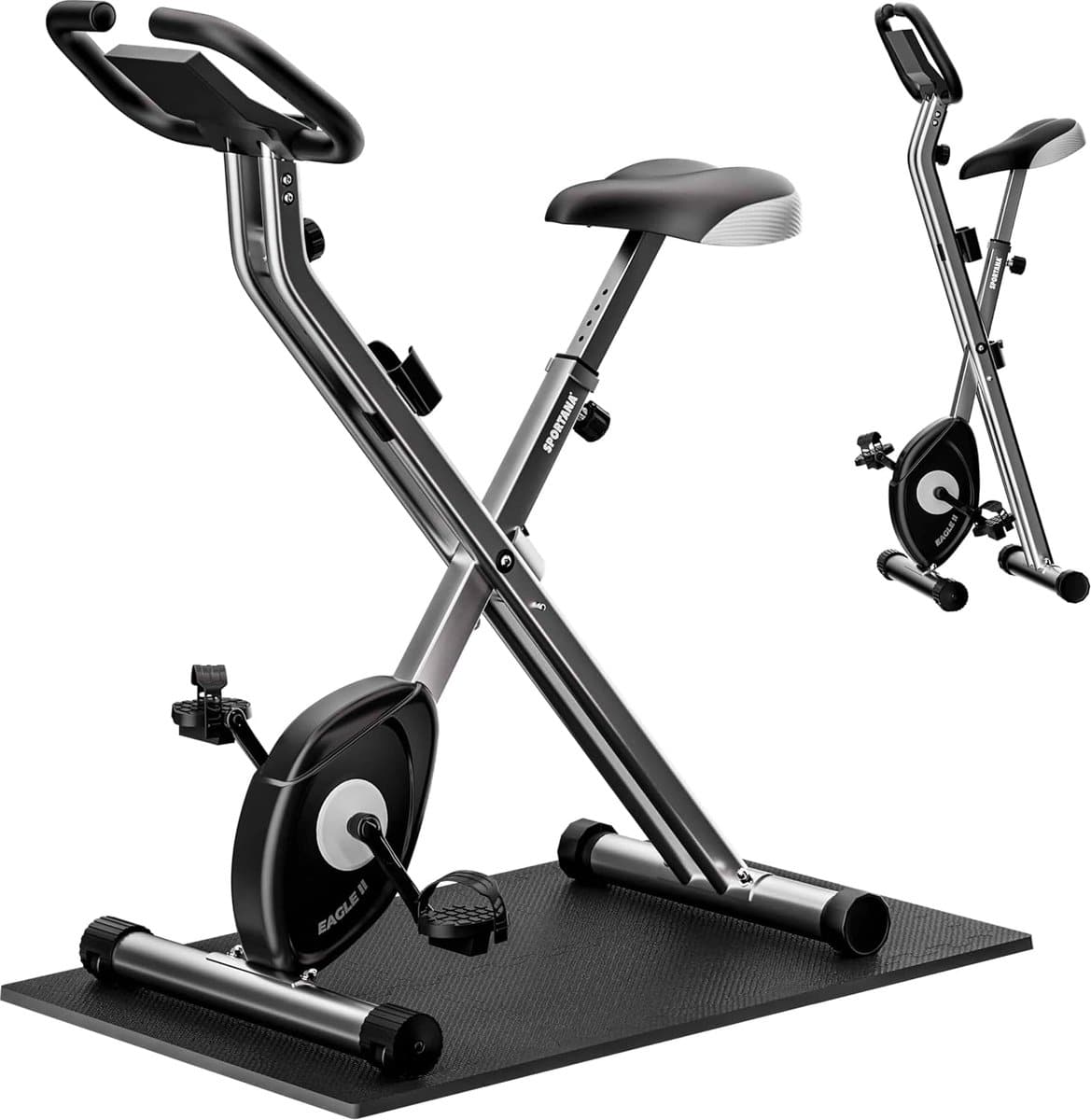 Inklapbare Hometrainer met 10 Weerstandslevels en LCD Display – Fitnessbike met 2 Fitnessbanden