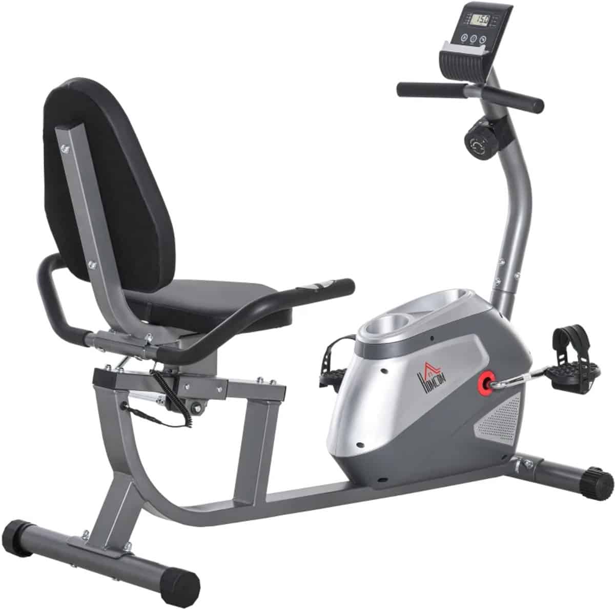 Ligfiets – Hometrainer – 8 Magnetische Weerstandsniveaus – LCD Scherm – Verstelbare Zitting en Weerstand – Hartslagsensoren – Max. Gebruikersgewicht 110 kg – Fietstrainer – Fitnessfiets – Grijs+Zilver