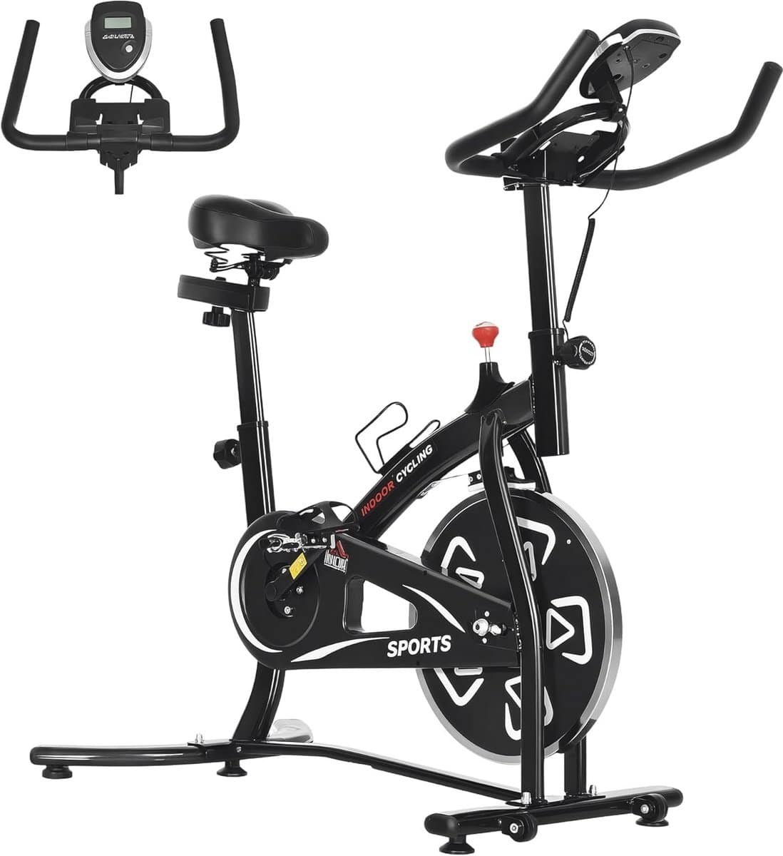 Blijf gezond en onderhoud je figuur met deze krachtige hometrainer, perfect voor thuisgebruik. Deze fitnessfiets heeft een multifunctioneel LCD-scherm dat tijd, snelheid, afstand, calorieverbruik en hartslag weergeeft. Geniet van comfortabele training dankzij het gewatteerde zadel en het ergonomisch gevormde stuur. De hometrainer is uitgerust met een smartphonehouder zodat je altijd verbonden kunt blijven. Het is eenvoudig te verstellen met 4 verschillende hoogtes voor het zadel en een verstelbare weerstand voor een persoonlijke trainingservaring. Met 2 zwenkwielen is de fiets gemakkelijk te verplaatsen. Maximale gebruikerscapaciteit is 100 kg. Eenvoudige montage met de meegeleverde handleiding. Verbeter je cardio, train verschillende spiergroepen en bereik je fitnessdoelen met deze functionele hometrainer.