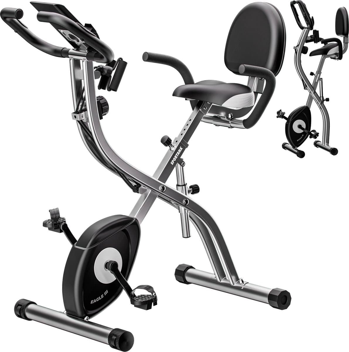 Sportana Hometrainer – Fitness – Fietstrainer – Opvouwbaar met hartslag Sensoren