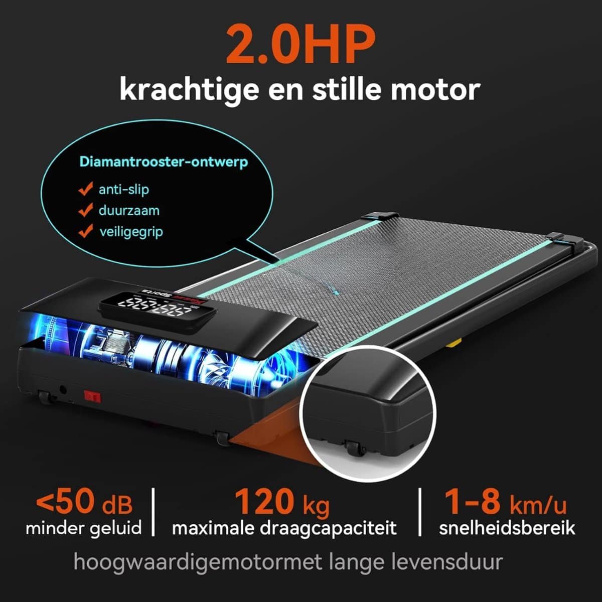 Snelheidsbereik 1-8 km/u – geschikt voor elk niveau, waardoor je jouw training perfect kunt afstemmen