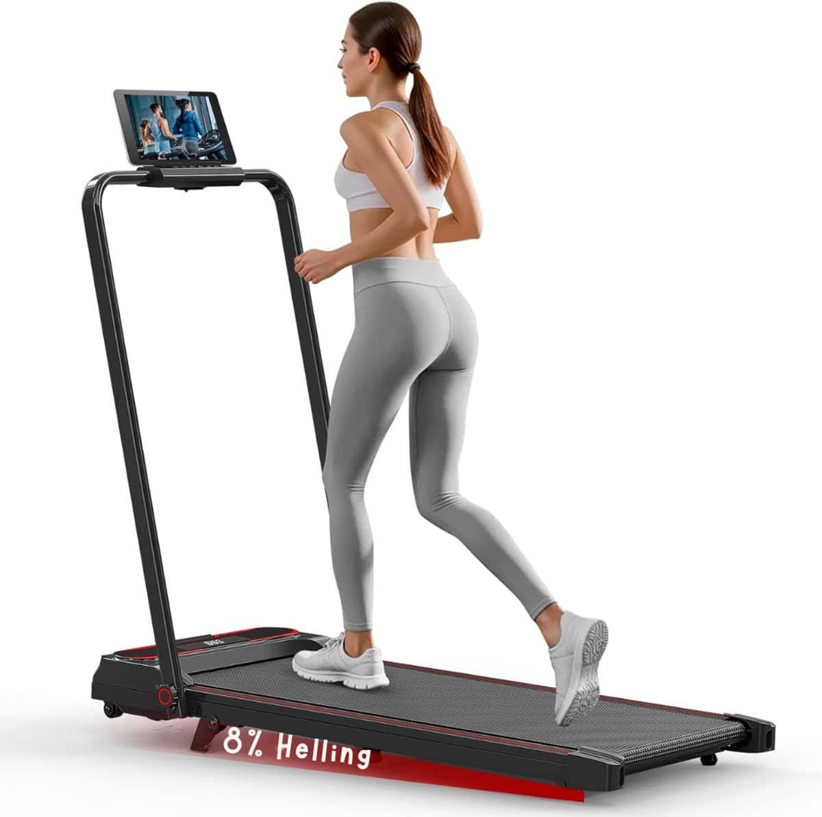 Deze 2-in-1 loopband voor thuis maakt het mogelijk om te wandelen of licht te joggen terwijl je werkt aan je bureau. Dankzij het compacte ontwerp als loopband voor onder het bureau blijf je actief tijdens lange werkdagen op kantoor of thuis. De hellingshoekfunctie zorgt voor extra uitdaging en effectievere calorieverbranding. Zo verbeter je je conditie zonder extra tijd vrij te maken.