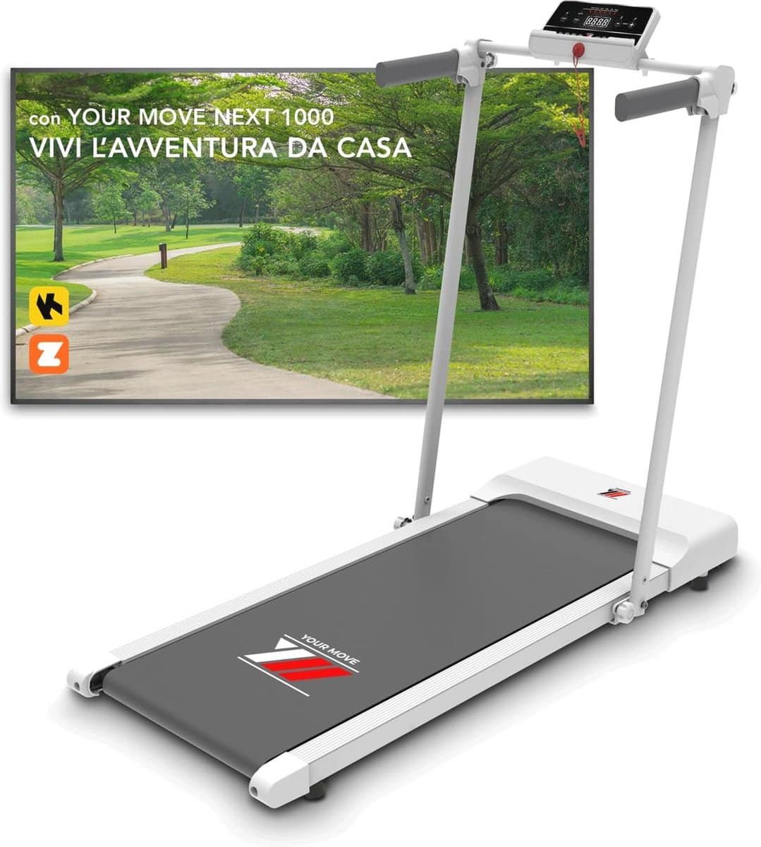 Deze praktische en compacte elektrische loopband is ideaal voor iedereen die gezondheid en gemak waardeert. Met zijn versterkte frame is hij extreem robuust maar ook licht en eenvoudig te verplaatsen. Dankzij de boekenopening met een hoek van 110 graden laat de loopband zich moeiteloos openen en inklappen. Met een dichtheid van slechts 16 cm kan hij gemakkelijk verstopt worden in de kleinste ruimtes onder banken of bedden. Maak gebruik van de geïntegreerde bluetooth en verbind met populaire trainingsapps zoals Kinomap en Zwift voor een interactieve trainingservaring. Personaliseer jouw training met 12 verschillende programma’s en ontdek prachtige reisroutes zelfs vanuit je woonkamer. Het multifunctionele display maakt het eenvoudig om de snelheid tijd en afstand in te stellen. Met een comfortabele tablet- en smartphonehouder geniet je van je favoriete entertainment tijdens het sporten. Voor extra comfort is de loopband uitgerust met een meerlaagse plaat die schokken absorbeert. De PRO-GRIP gecoate tape zorgt voor optimale grip. Ideaal voor licht wandelen en rennen met een loopvlak van maximaal 103 x 42 cm. Tot slot geef jezelf de beste ervaring door de loopband op een rubberen mat te plaatsen.
