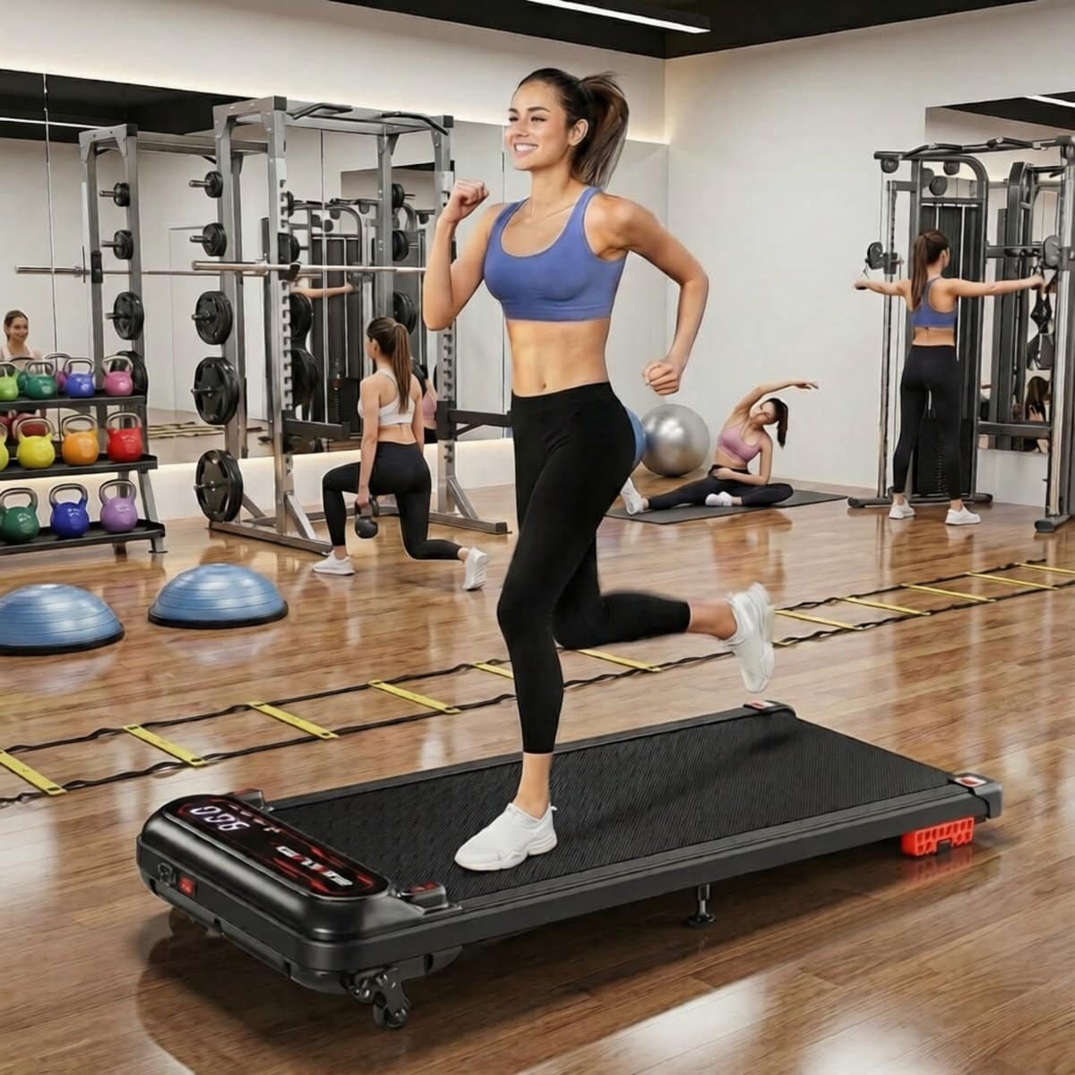 Met een afmeting van 114 x 52 x 11,5 cm past de loopband makkelijk onder meubels of bureaus. Geïntegreerde transportwieltjes maken het eenvoudig om de loopband te verplaatsen en op te bergen, zonder stabiliteit te verliezen. Ideaal voor thuiswerk, kantoor of onder-bureau wandelingen.