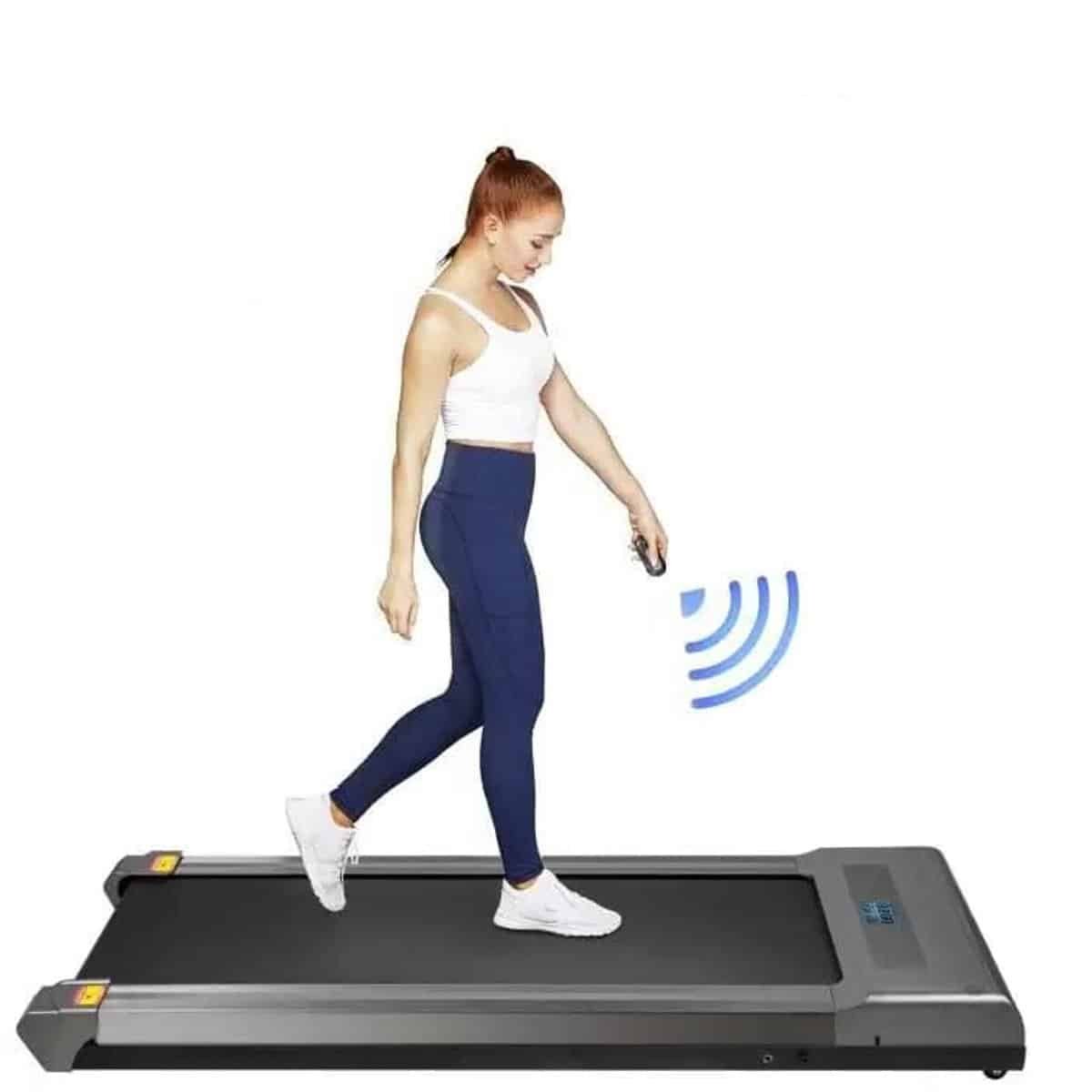 Blijf actief terwijl je werkt of ontspant met deze draagbare loopband voor onder het bureau. Met een krachtige 500W motor en een instelbare snelheid van 1-6 km/u is deze wandelband ideaal voor zowel lichte wandelingen als actieve bewegingen tijdens het werken. Het slanke en compacte ontwerp past moeiteloos in elke ruimte, waardoor je hem eenvoudig onder een bureau of bank schuift wanneer hij niet in gebruik is. De zilveren afwerking geeft een moderne uitstraling, perfect voor thuis of op kantoor.