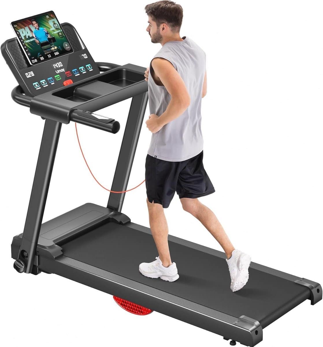 Deze loopband combineert technologie en ergonomisch design voor een unieke fitnesservaring. Met real-time gegevensmonitoring, een intelligente app, en 12 vooraf ingestelde trainingsprogramma’s, biedt deze ultrastille loopband met borstelloze motor drievoudige demping voor optimaal comfort. Geniet van een extra groot loopbereik, bluetooth-luidsprekers, en handige bekerhouders tijdens je training. Een perfecte keuze voor het hele gezin om van het sporten te genieten!