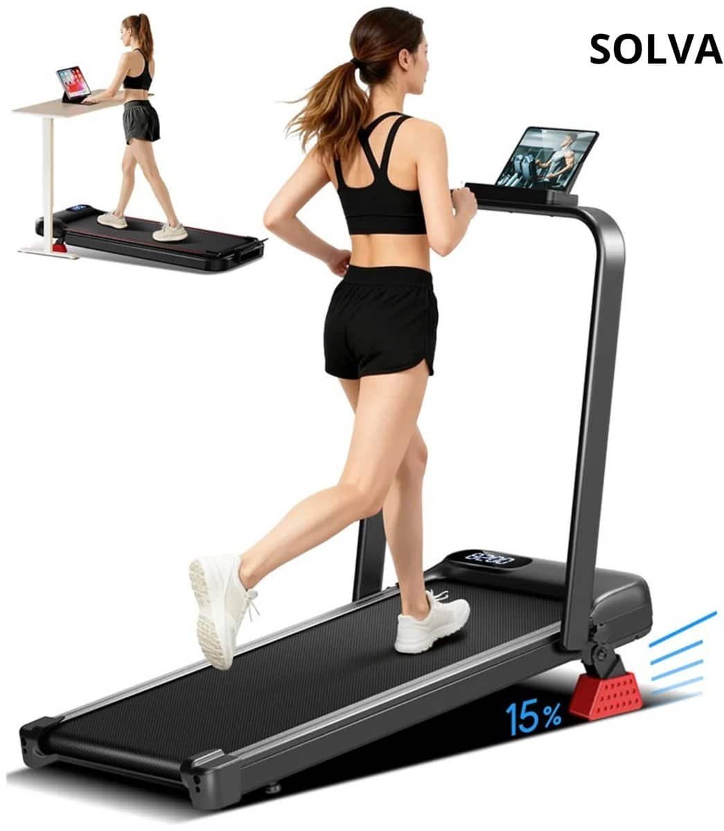 SOLVA Loopband – Inklapbaar – Loopbanden Voor Thuis – Met 15% Helling – Stille Motor – Geen Montage Nodig – 103,6×52,6×95cm – Zwart
