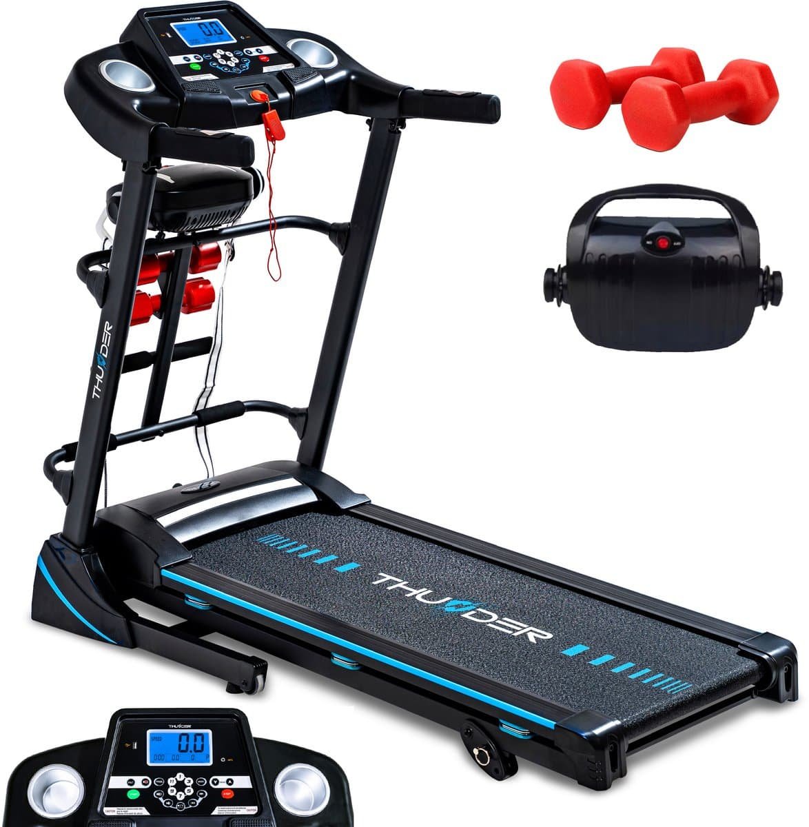 THUNDER® Loopband | ICON-D-BLACK | Met Massagefunctie | Opvouwbaar en Geavanceerd | Sneltoetsen | Veiligheidssleutel | Transportwielen | Plaats voor bidon | Bluetooth | USB-poort | Trainingsprogramma’s | Hellingshoek |