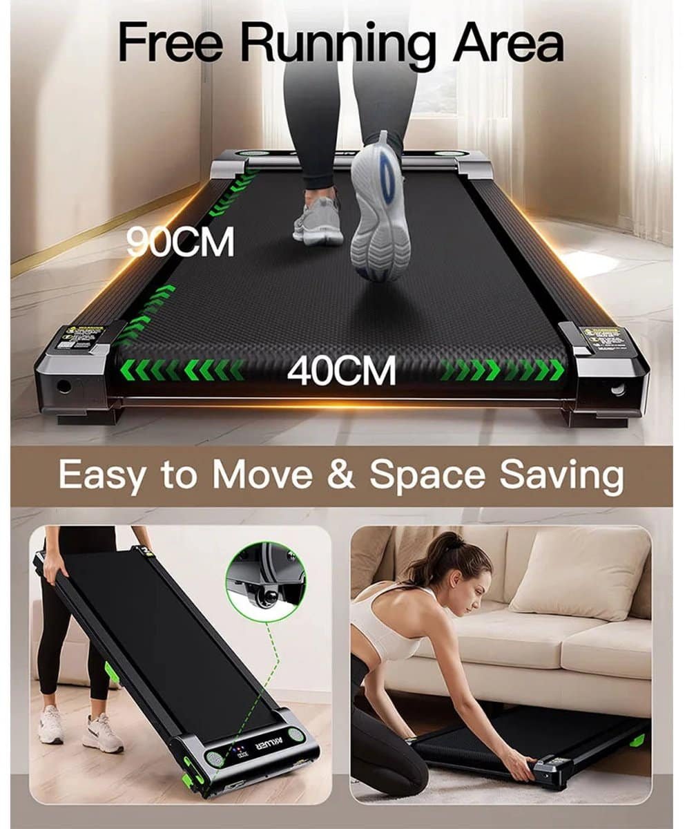 Blijf Bewegen, Ook Thuis – Compacte Walking Pad met Verstelbare Hellingshoek Wil je fit blijven zonder veel ruimte in te nemen? Deze slanke walking pad is dé oplossing voor iedereen die gemakkelijk en comfortabel thuis wil wandelen of licht trainen. Dankzij het compacte formaat plaats je hem eenvoudig onder je bureau of in een kleine kamer.