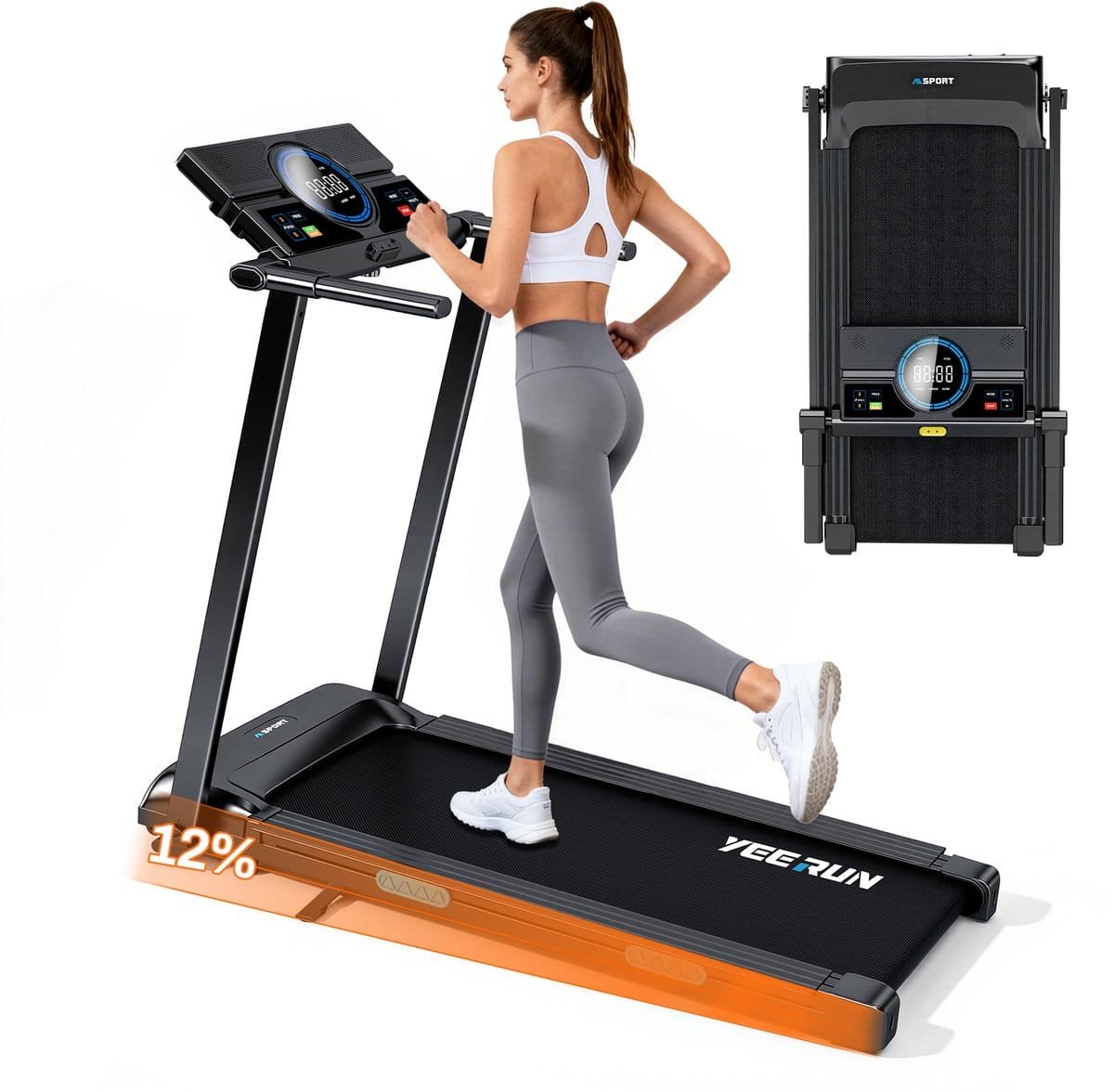 YEE RUN Elektrische Loopband – 1-8 km/u Snelheidsbereik – Met 12% Helling functie – 12 programma’s – Treadmill voor thuis