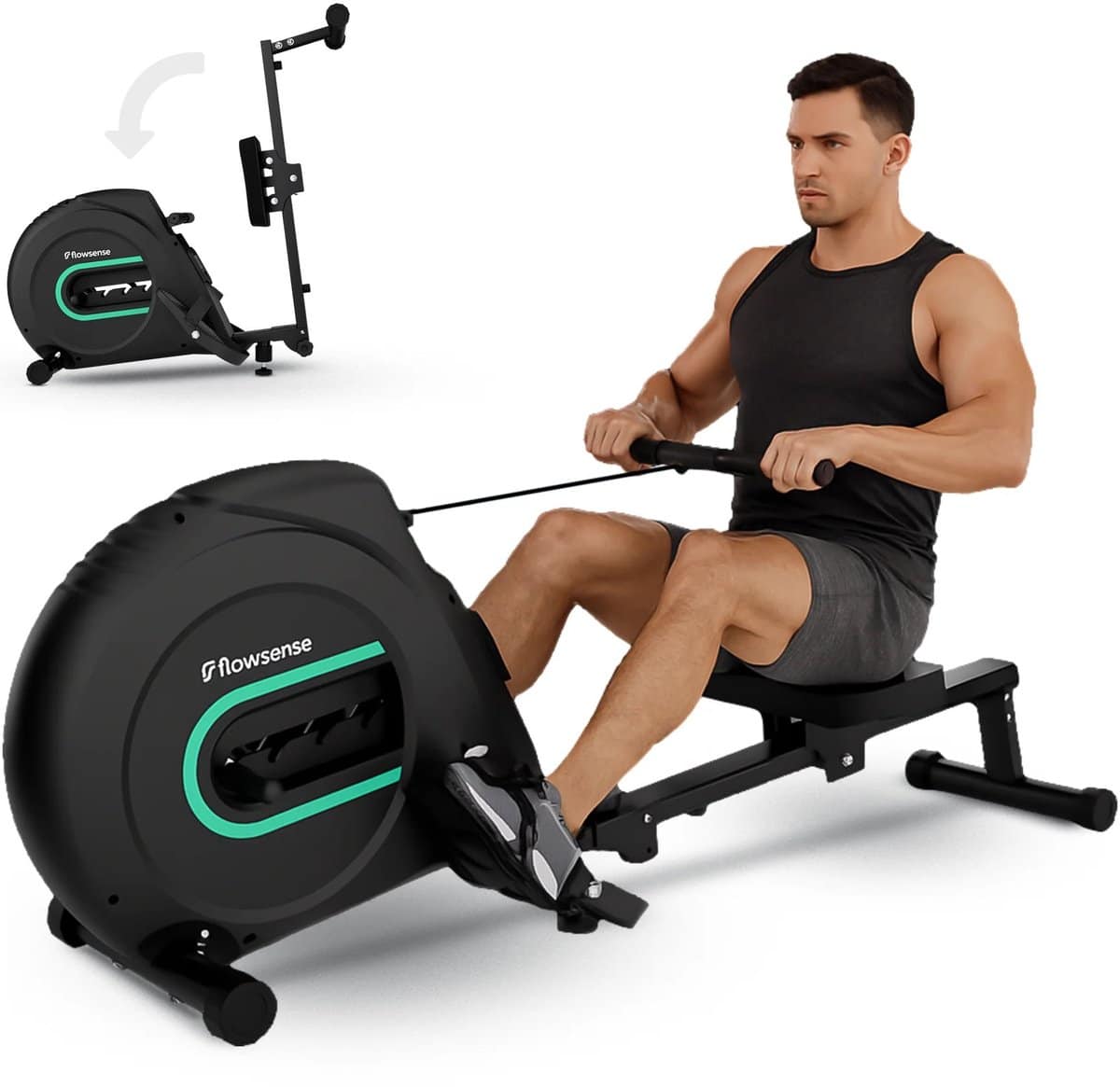 Flowsense Elvora Lite Roeimachine – Inklapbaar Roeiapparaat – Elastische Weerstand – LCD Display – Stil & Compact – Voor Gebruikers tot 200 cm / 115 kg – Thuis Fitness Roeitrainer