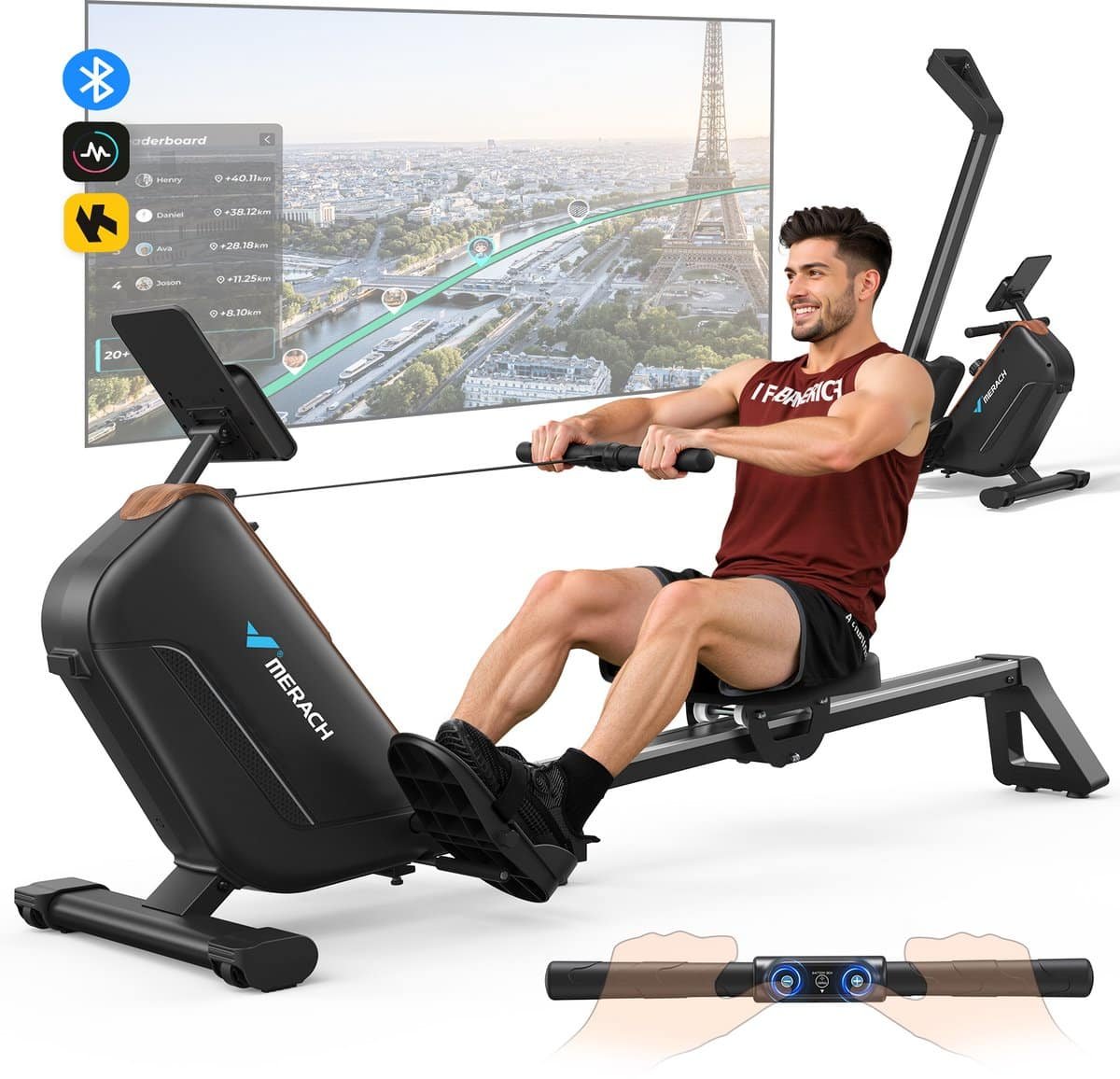 MERACH Roeimachine voor thuis – Stille magnetische roeitrainer – LCD-display – 16-staps magnetisch systeem – Bluetooth-monitor – Verstelbare tablet-houder – Slimme app-monitoring – Eenvoudige montage – 160 kg gewichtscapaciteit – Verticale opslag