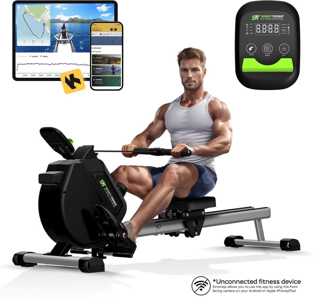 SportTronic® ST-X8 Roeitrainer – Inklapbare Roeimachine – Magnetische Roeiapparaat met 16 Weerstandsniveaus & App met Trainingsprogrammas