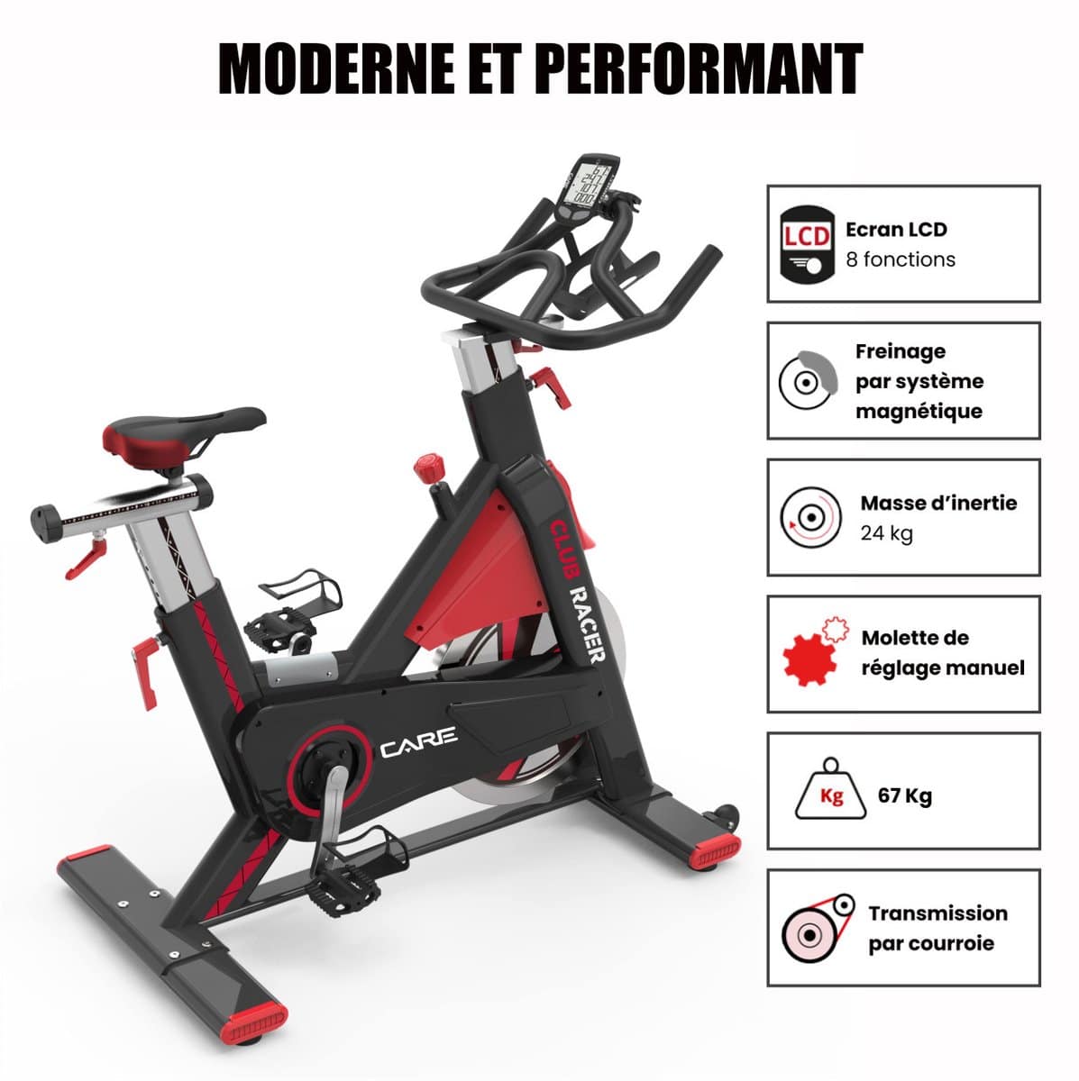 Computer: De Club Racer spinningfiets is uitgerust met een draadloze en gecodeerde teller met 7 essentiële functies om je voortgang te volgen: