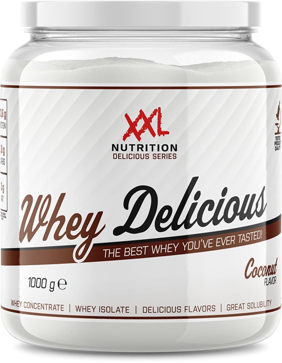 XXL Nutrition - Whey Delicious - 80% Eiwit - Coconut / Kokos - Wei Eiwitpoeder met BCAA & Glutamine, Proteine Poeder, Eiwit shake, Whey Protein - Diverse Smaken - 1000 gram (33 shakes)