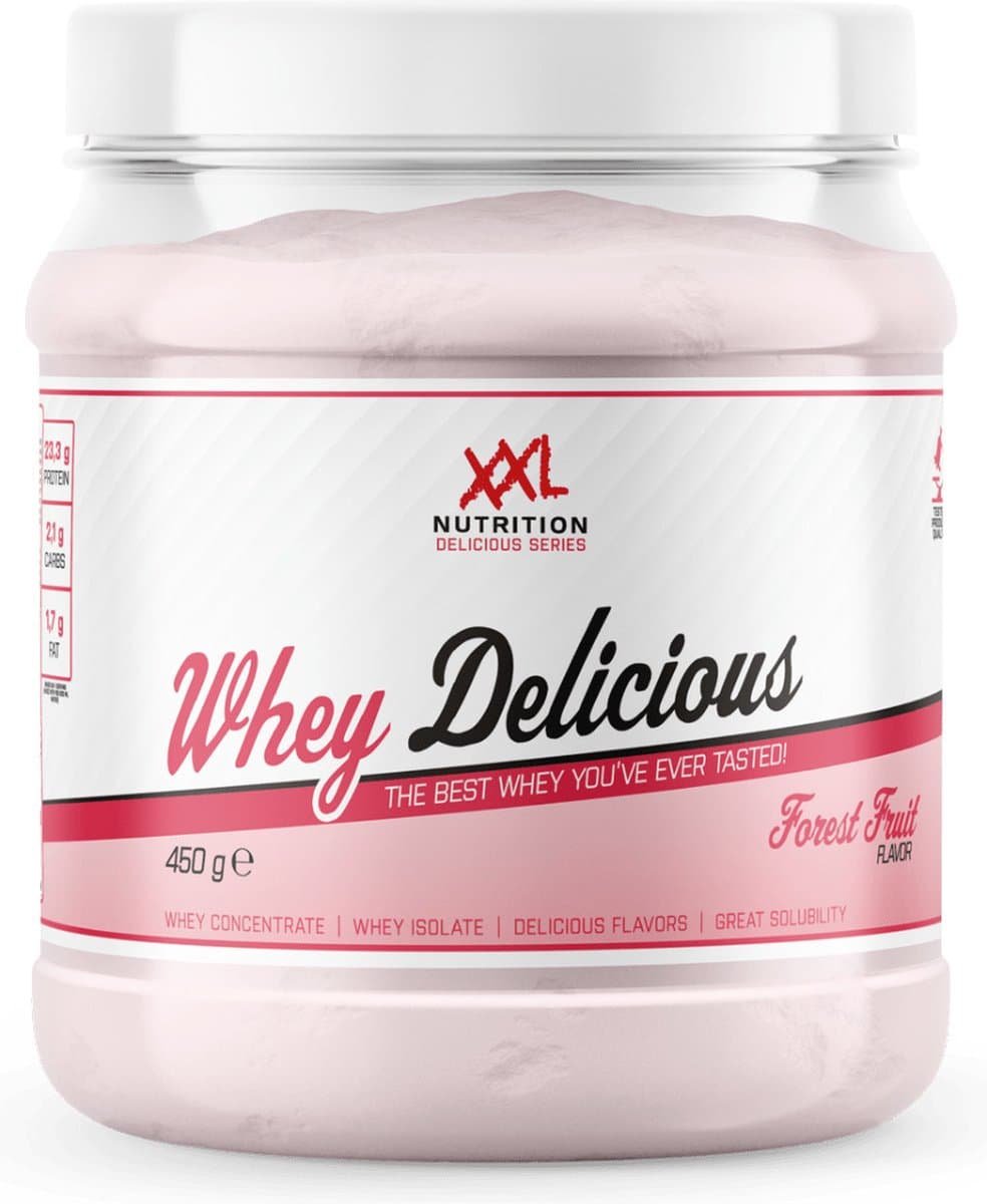 XXL Nutrition – Whey Delicious – 80% Eiwit – Forest Fruit – Wei Eiwitpoeder met BCAA & Glutamine, Proteine Poeder, Eiwit shake, Whey Protein – Diverse Smaken – 450 gram (15 shakes)