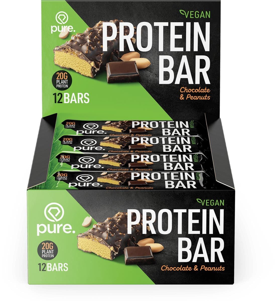 Pure. – Vegan Protein Bar – 20g eiwit – chocolade & pinda’s – eiwitreep – eiwit snack – sport