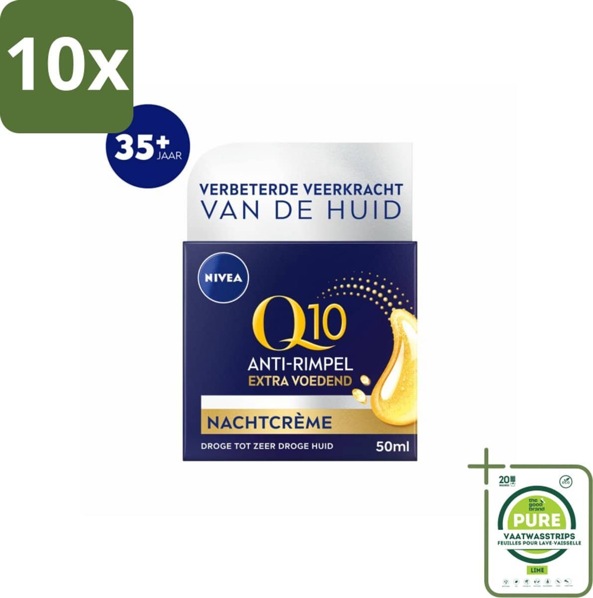 10 x NIVEA - Nachtcrème - Q10 Extra Voedend - Voor droge huid - Anti-Rimpel - Met Creatine - 50 ml - Grootverpakking - NIVEA Q10 - Nachtcrème - Droge Huid - Anti-rimpelcrème - Hydratatie