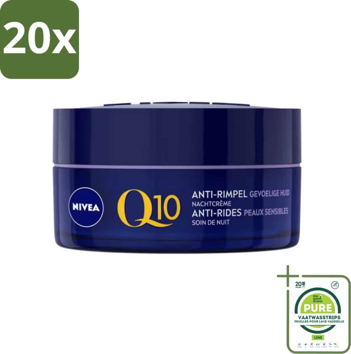 20 x NIVEA – Nachtcrème – Q10 POWER Anti-Rimpel Gevoelig – Voor gevoelige huid – Met Q10, Creatine & Zoethoutextract – 50 ml – Grootverpakking – Nivea Q10 – Anti-rimpel Crème – Gevoelige Huid – Nachtcrème – Rimpelvermindering