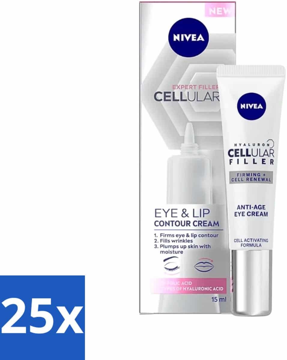 25 x NIVEA – Oogcrème – CELLular Expert Filler Anti-Veroudering – Voor ouder wordende huid – Met Hyaluronzuur & Puur Foliumzuur – 15 ml – Kraaienpootjes – Hyaluronzuur – Creatine – Puur Foliumzuur