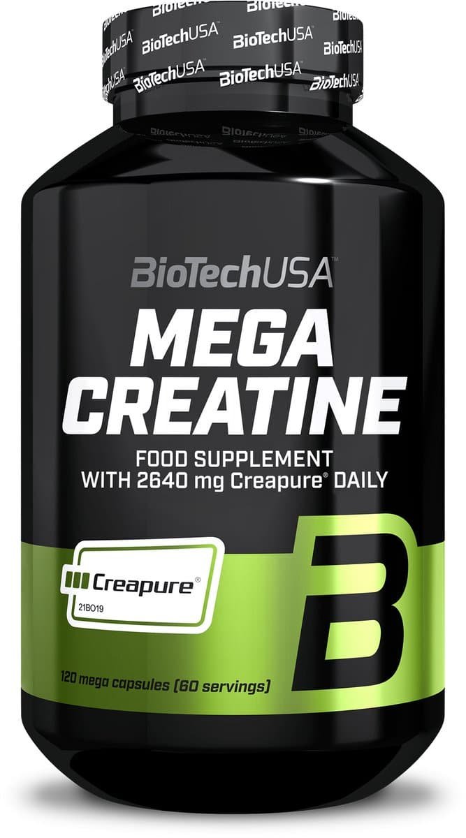 BioTechUSA Mega Creatine | Creapure® creatinemonohydraat | Capsules met hoge absorptie | Lactose- en glutenvrij | 60-daagse levering | Ideaal voor sporters en actieve volwassenen | 120 megacapsules