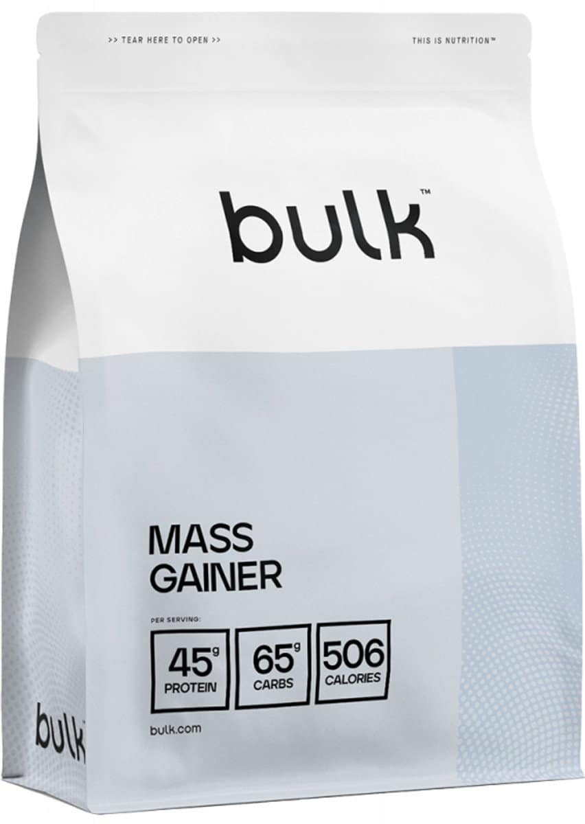 Bulk Mass Gainer is een koolhydraat-eiwitpoeder ter aanvulling van de dagelijkse voeding. Het product is geschikt voor het bereiden van een energierijke shake en kan flexibel in verschillende voedingsschema’s worden geïntegreerd. Door de poedervorm is het eenvoudig te bereiden met water, melk of andere dranken. De voedingswaarden bedragen 1594 kJ (377 kcal) per 100 g. Het vetgehalte is 4,9 g, waarvan 1,4 g verzadigde vetzuren. Daarnaast bevat het product 48 g koolhydraten per 100 g, waarvan 1,9 g suiker, en 33 g eiwit. Een portie van 135 g levert ongeveer 2152 kJ (509 kcal), ongeveer 6,6 g vet met ongeveer 1,9 g verzadigde vetzuren, ongeveer 64,8 g koolhydraten met ongeveer 2,6 g suiker en ongeveer 44,6 g eiwit. Bulk Mass Gainer is daarmee een energierijke aanvulling, bijvoorbeeld op dagen met een verhoogde energiebehoefte. Bulk Mass Gainer is verkrijgbaar in verschillende smaken. Afhankelijk van de soort kunnen de samenstelling van de ingrediënten en de sensorische eigenschappen enigszins verschillen. De aangegeven voedingswaarden hebben betrekking op de gemiddelde samenstelling.