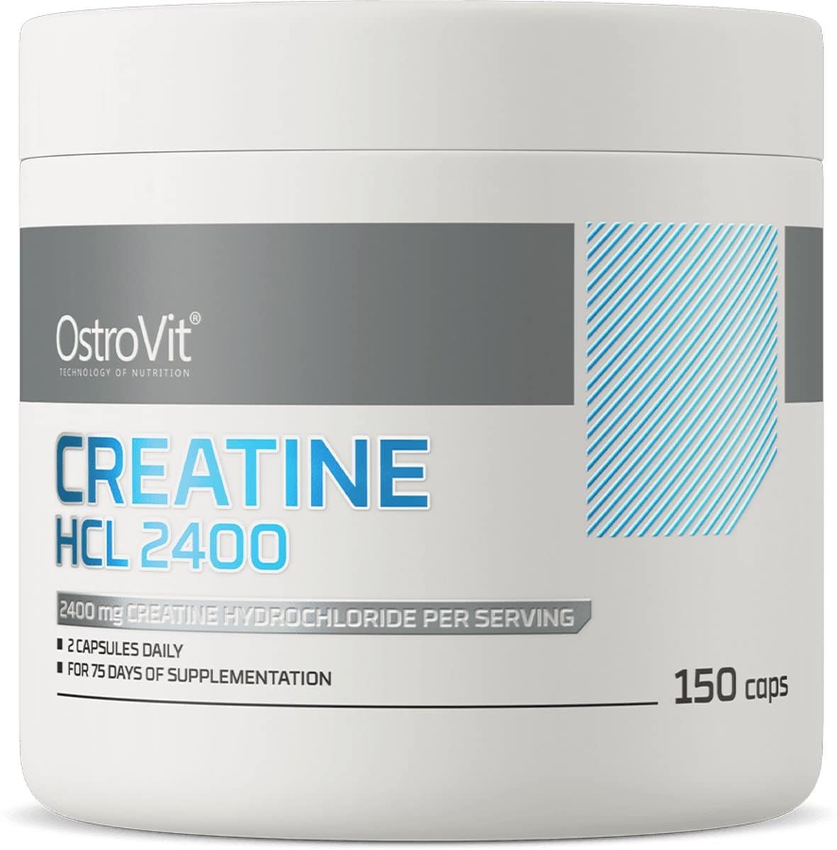 OstroVit Creatine HCl 2400 mg 150 capsules OstroVit Creatine HCl 2400 mg is een hoogwaardig voedingssupplement dat een bron is van creatine in de vorm van hydrochloride. Het is een preparaat dat verkrijgbaar is in de vorm van gemakkelijk in te slikken capsules, gemaakt voor atleten en lichamelijk actieve mensen.