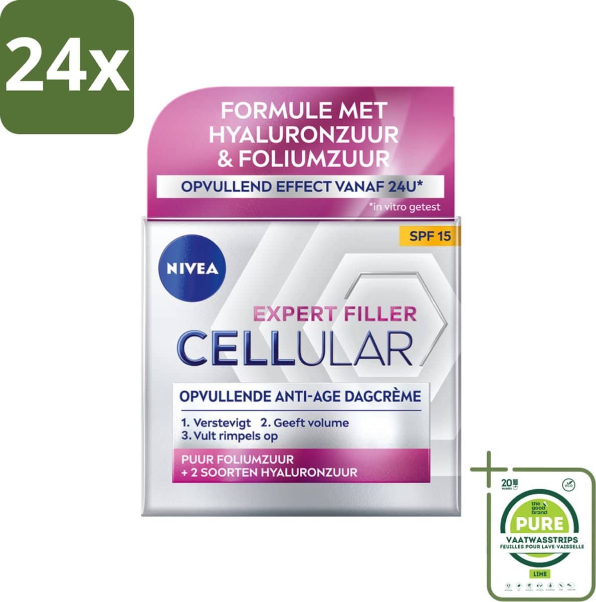 NIVEA - CELLular Expert Filler Dagcrème - Anti-Veroudering Gezichtscrème - SPF 15 - Met Hyaluronzuur, Creatine & Foliumzuur - 50 ml - Voordeelverpakking - 24 stuks - Hyaluronzuur - Foliumzuur