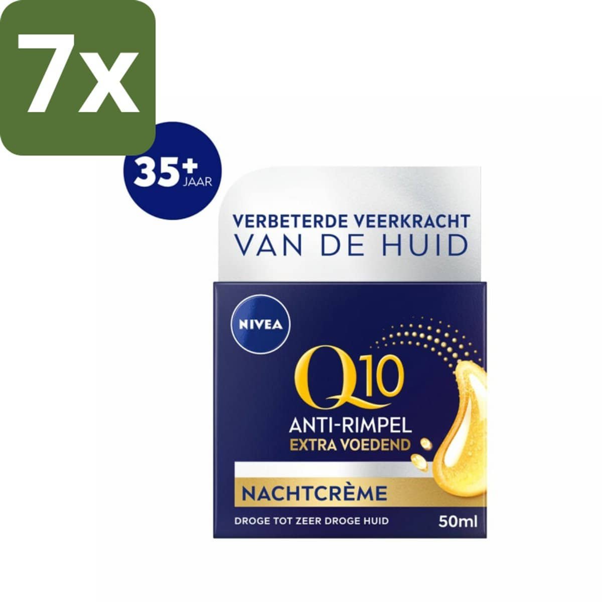 7 x NIVEA - Nachtcrème - Q10 Extra Voedend - Voor droge huid - Anti-Rimpel - Met Creatine - 50 ml - Grootverpakking - NIVEA Q10 - Nachtcrème - Droge Huid - Anti-rimpelcrème - Hydratatie