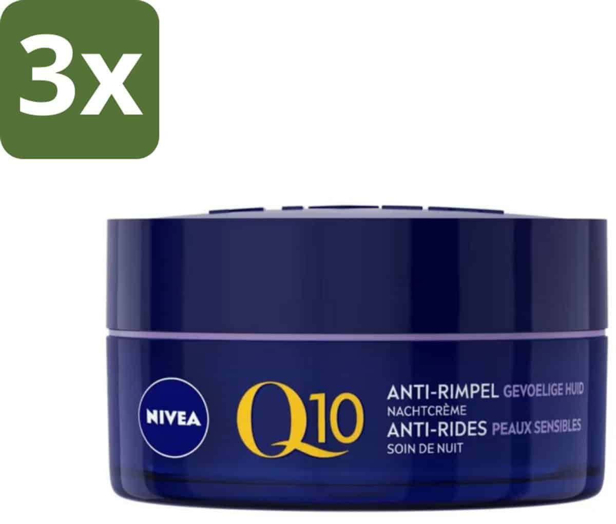 NIVEA – Nachtcrème – Q10 POWER Anti-Rimpel Gevoelig – Voor gevoelige huid – Met Q10, Creatine & Zoethoutextract – 50 ml – Bulkverpakking – 3 stuks