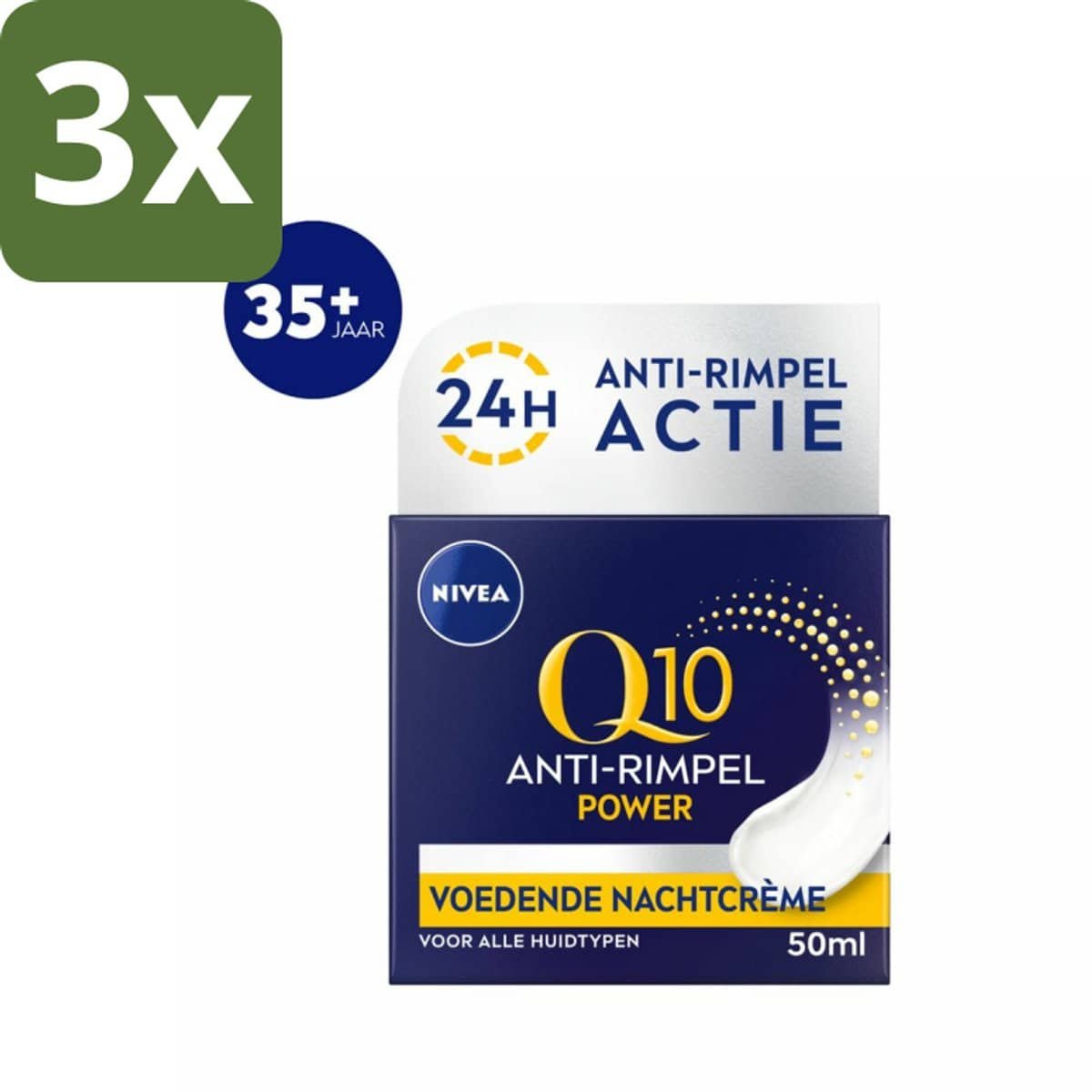 NIVEA - Nachtcrème - Q10 POWER Anti-Rimpel - Voor alle huidtypen - Met Q10 & Creatine - 50 ml - Bulkverpakking - 3 stuks