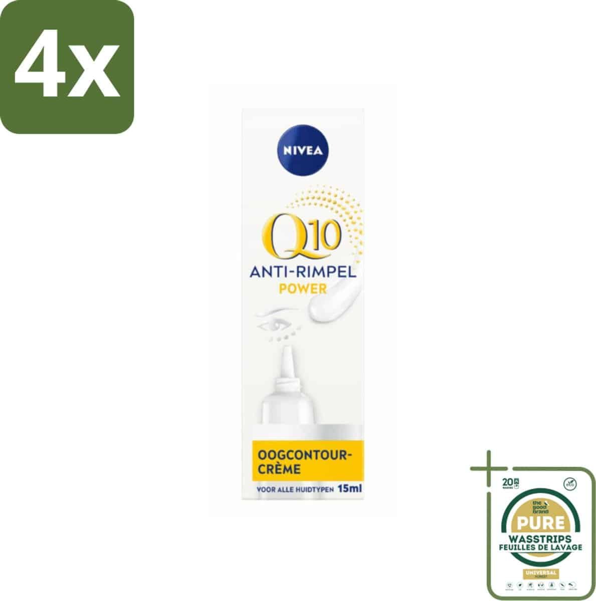 NIVEA – Oogcrème – Q10 POWER – Tegen donkere kringen & rimpels – Voor alle huidtypen – Met Q10 & Creatine – 15 ml – Voordeelverpakking – 4 stuks – Donkere kringen – Wallen