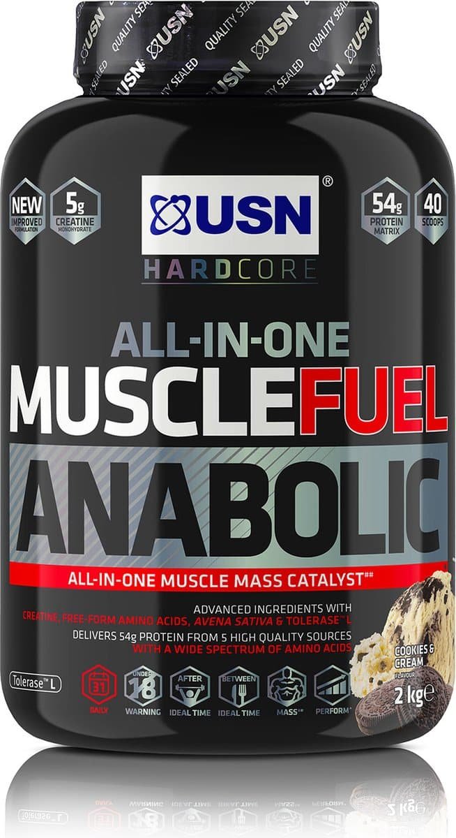 USN Muscle Fuel Anabolic (2000g) Cookies & Cream – Gewichtstoename – Zonder Creatine