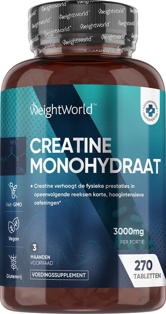 WeightWorld Creatine Monohydraat – 3000 mg – 270 vegan creatine monohydrate tabletten voor 3 maanden