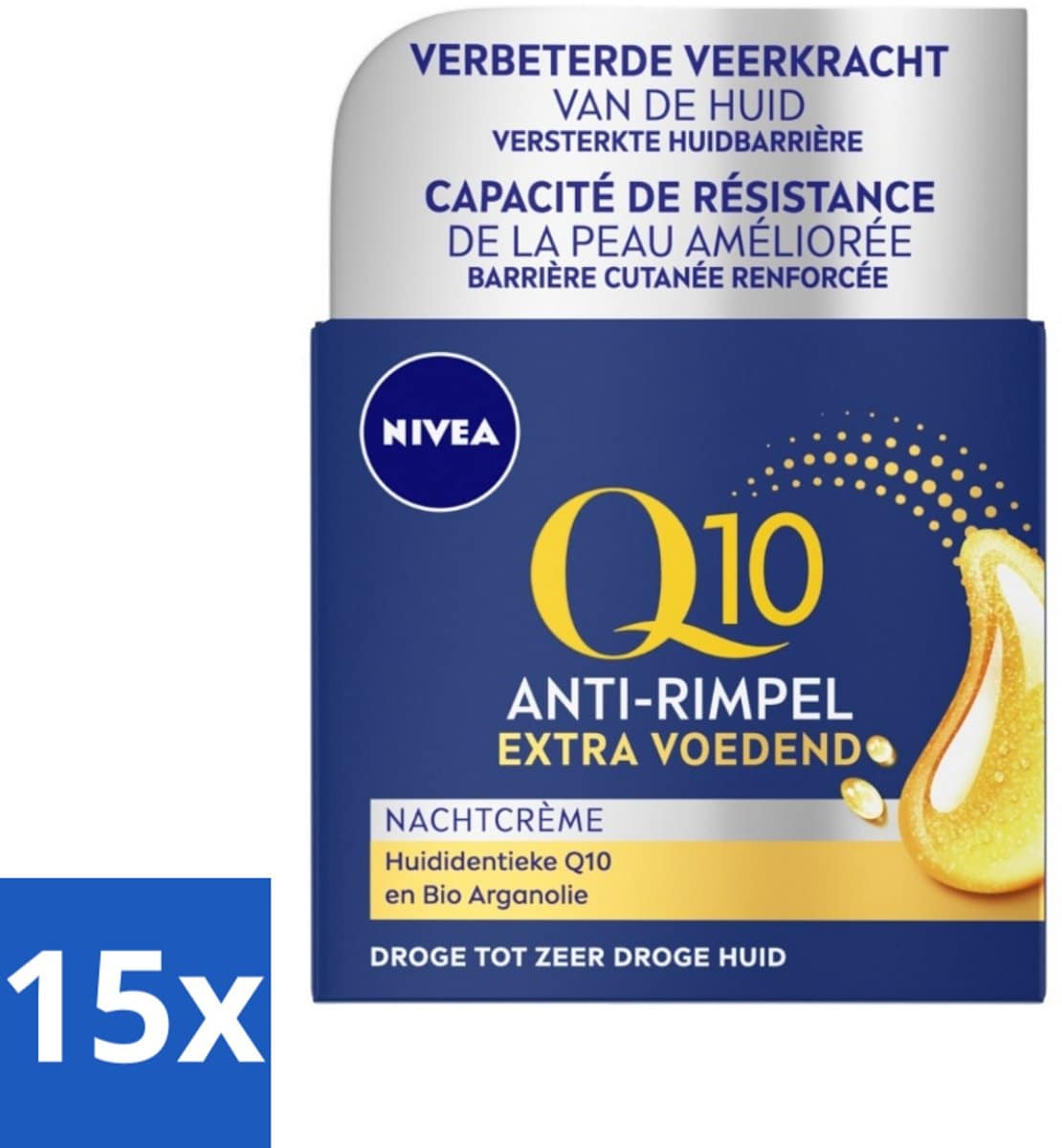 NIVEA – Nachtcrème – Q10 Extra Voedend – Voor droge huid – Anti-Rimpel – Met Creatine – 50 ml – Bulkverpakking – 15 stuks