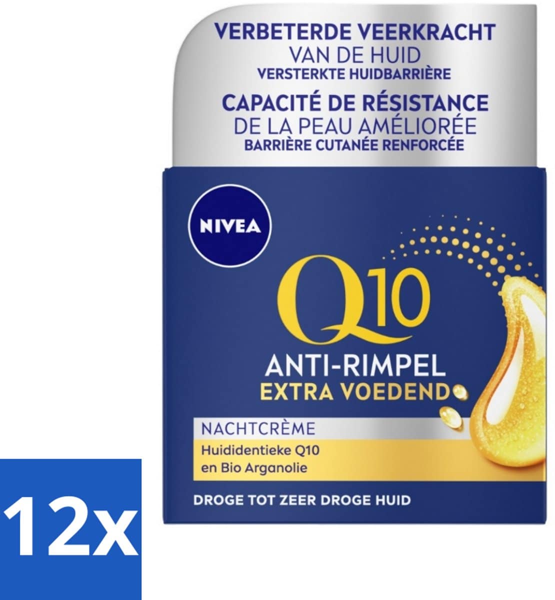 NIVEA – Nachtcrème – Q10 Extra Voedend – Voor droge huid – Anti-Rimpel – Met Creatine – 50 ml – Voordeelverpakking – 12 stuks