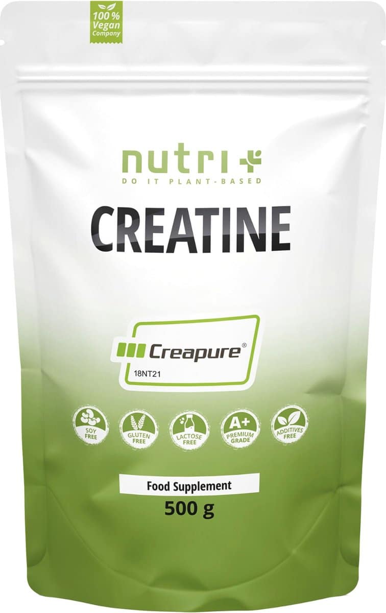 nutri+ Creatine Creapure 500 g - Creatine Monohydraat Poeder - 100% Puur - Ultrafijn Neutraal Hoogste Dosering - Veganistisch - Topkwaliteit uit Duitsland voor bodybuilding