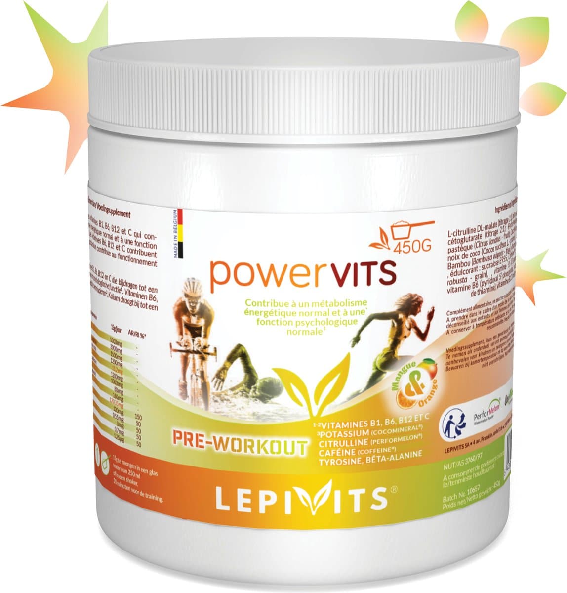 Powervits | 450mg | Een pre-workout die perfect voldoet aan de behoeften van het lichaam vlak voor een zware inspanning. | Gemaakt in België | LEPIVITS