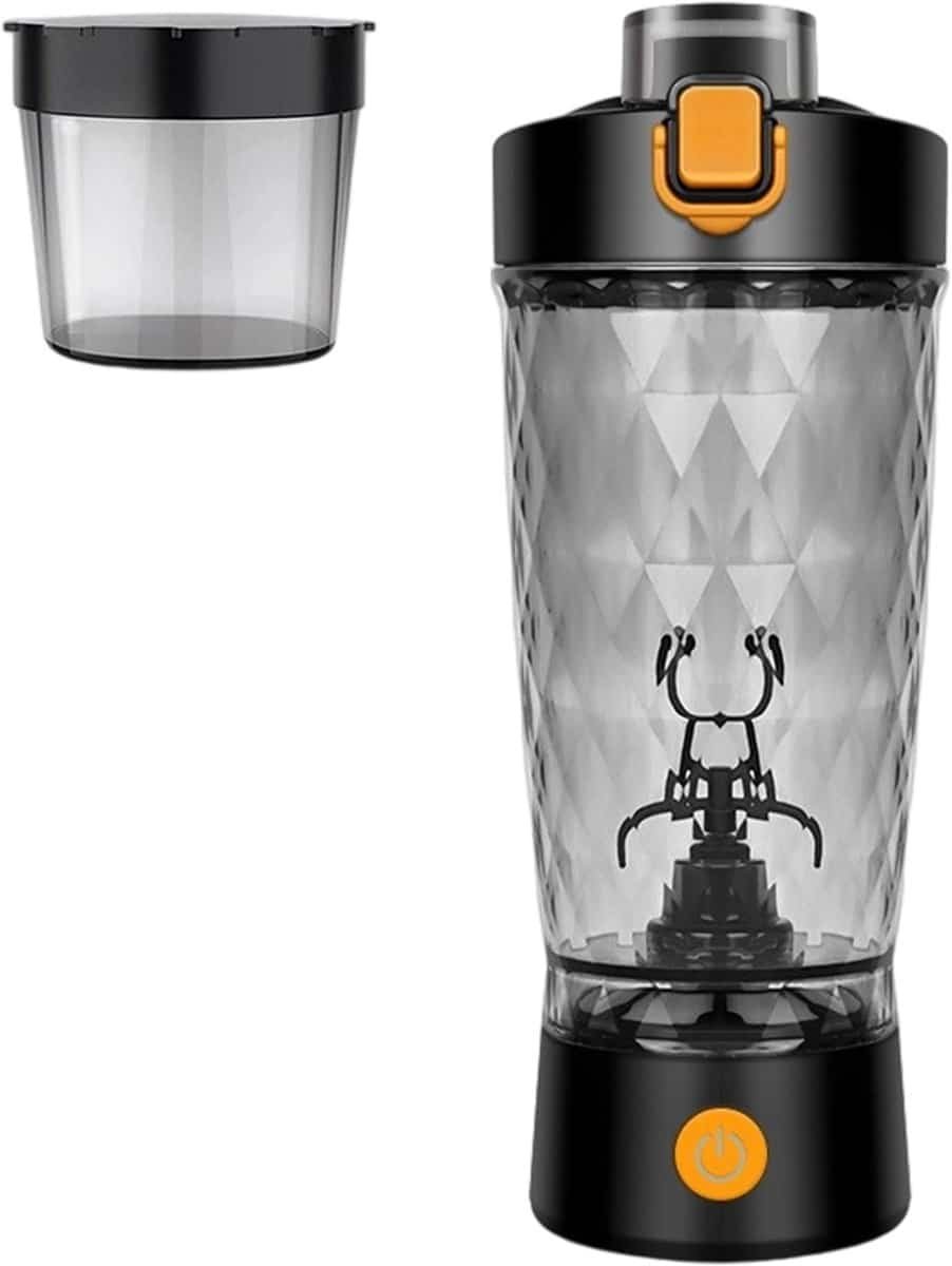 longziming -Elektrische Protein Shaker 650ml – USB Oplaadbare Shakebeker met Krachtige Motor en Afneembaar Poedervak – BPA-vrij, Gemakkelijk Schoon te Maken, Perfect voor Eiwitshakes, Pre-Workout & Smoothies – Zwart