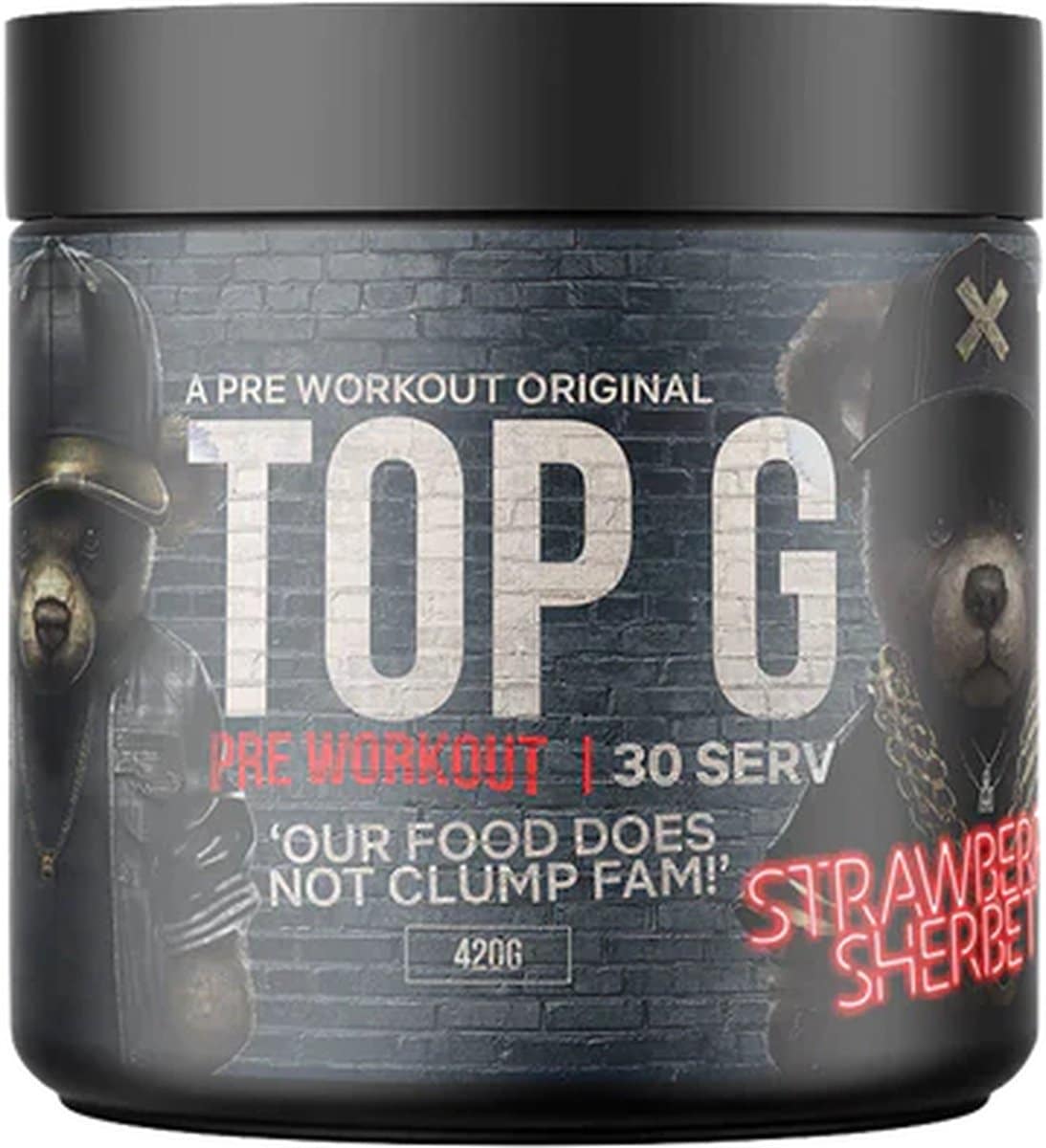 Top G Pre Workout Energy Strawberry Sherbet - 420 gram - 30 servings - Pre-Workout met Caffeine, Beta Alanine, L-Citrulline, L-Tyrosine, Taurine en Choline - Verhoog je Focus en Energie voor Fitness en Krachttraining - Energy Drink - Slechts €29.99